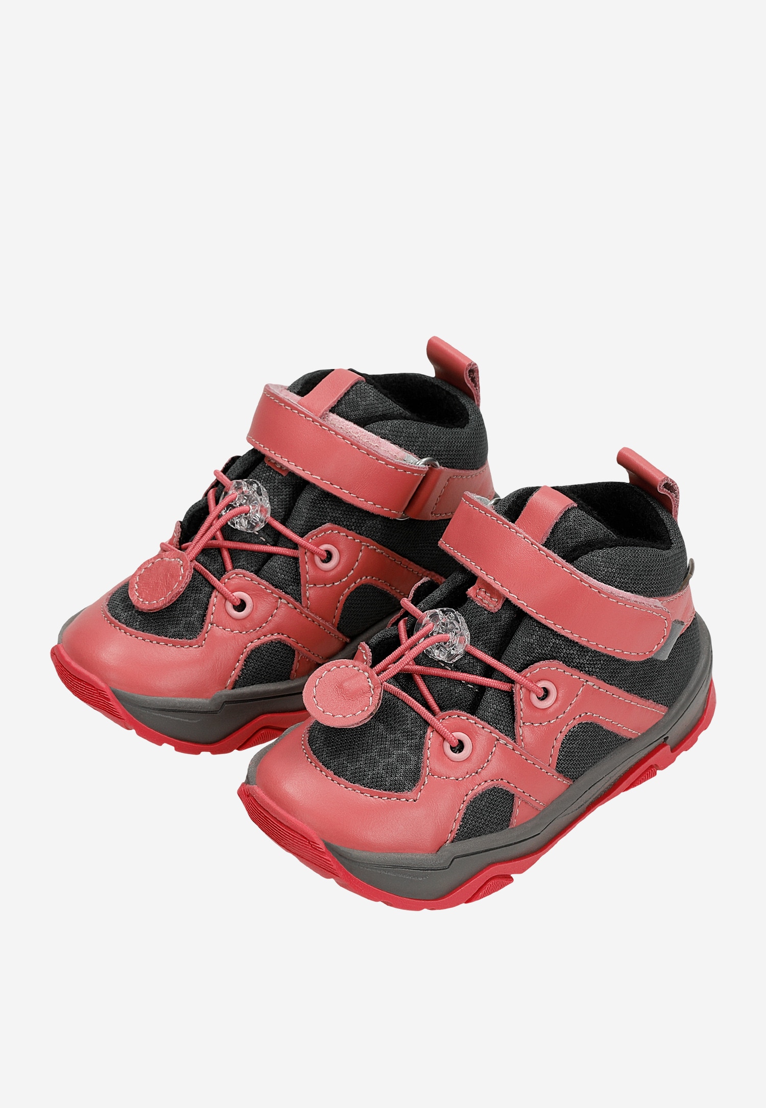 Cizmele pentru fete se închid cu velcro ajustabile, permițând o potrivire perfectă pe piciorul copilului, indiferent de dimensiune sau grosime. Partea superioară este confecționată din piele naturală netedă, combinată cu material textil respirabil de înaltă calitate.